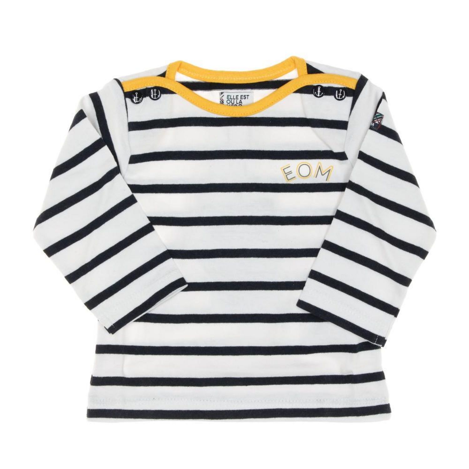T-shirt enfant Elle est ou la mer !Manches longuesCol rondColoris : Marine/BlancRayuresComposition : 100% coton