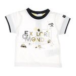 T-shirt garçon de la marque Elle est ou la mer !Manches courtesCol rondBoutons dans le dosColoris : BlancImprimé sur l'avantComposition : 100% coton