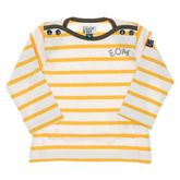 T-shirt garçon de la marque Elle est ou la mer !Manches longuesCol rondColoris : Jaune/Blanc/KakiBoutons sur les épaulesRayuresComposition : 100% coton