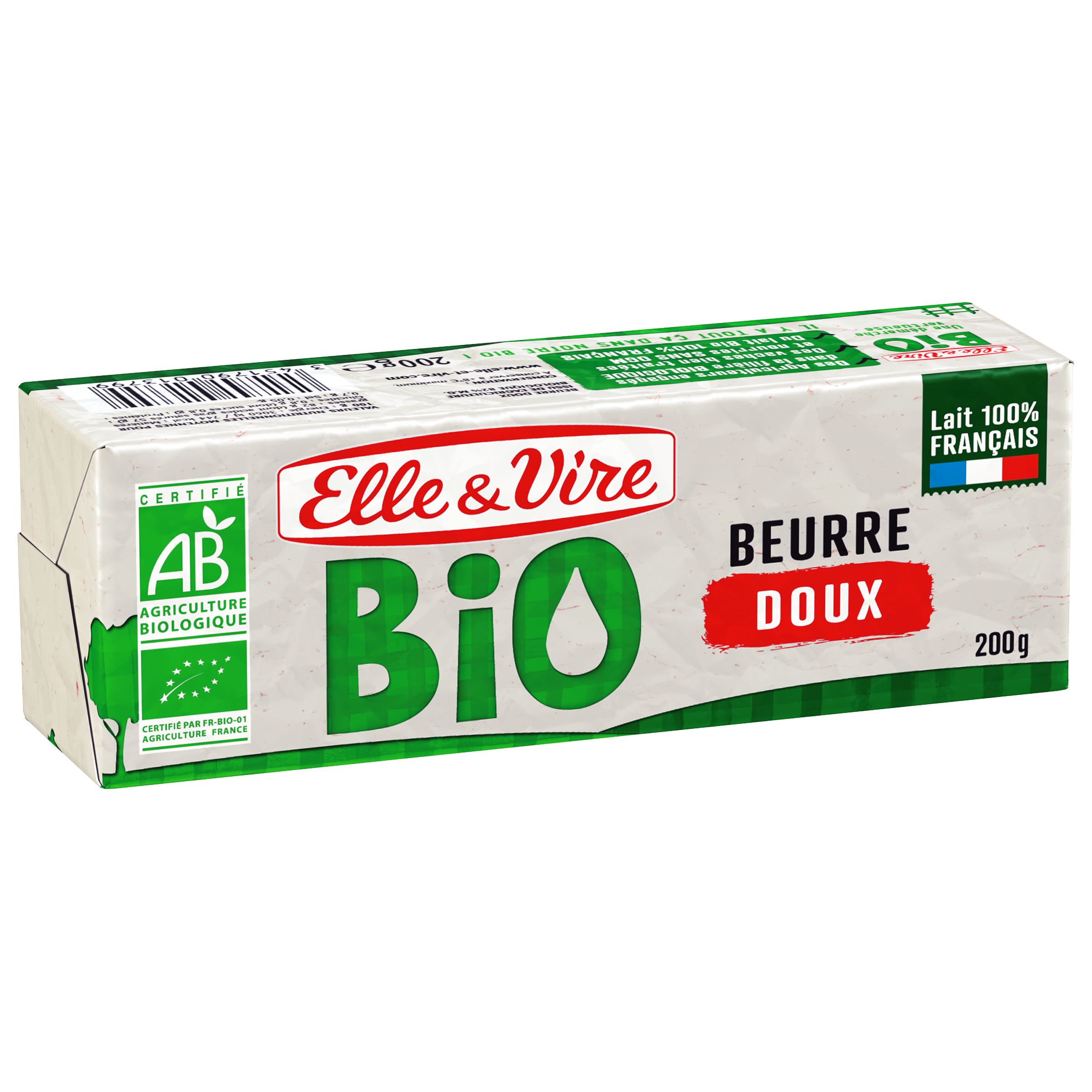 Tout le monde le sait, en Normandie, le beurre, ça nous connaît ! Alors quoi de plus évident que Le Beurre Normand, un beurre issu des meilleures crèmes de Normandie, fabriqué dans notre laiterie de Condé-sur-Vire, au cœur de la Manche. Son format inédit, pratique et facile à couper, rend votre quotidien plus facile, que ce soit pour vos tartines ou en cuisine. Beurre doux issu de l'agriculture biologique 82% MG