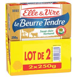 Le Beurre Tendre d'Elle & Vire, c'est un beurre au goût frais et riche en saveurs, fabriqué en Normandie. Nos maîtres beurriers utilisent tout leur savoir-faire pour vous offrir un beurre à la texture délicieusement tendre. Facile à tartiner, il est idéal pour vos petits déjeuners. Vous pouvez aussi l'utiliser en cuisine, pour vos pâtisseries ou la cuisson de vos aliments. Il ne contient aucun additif.