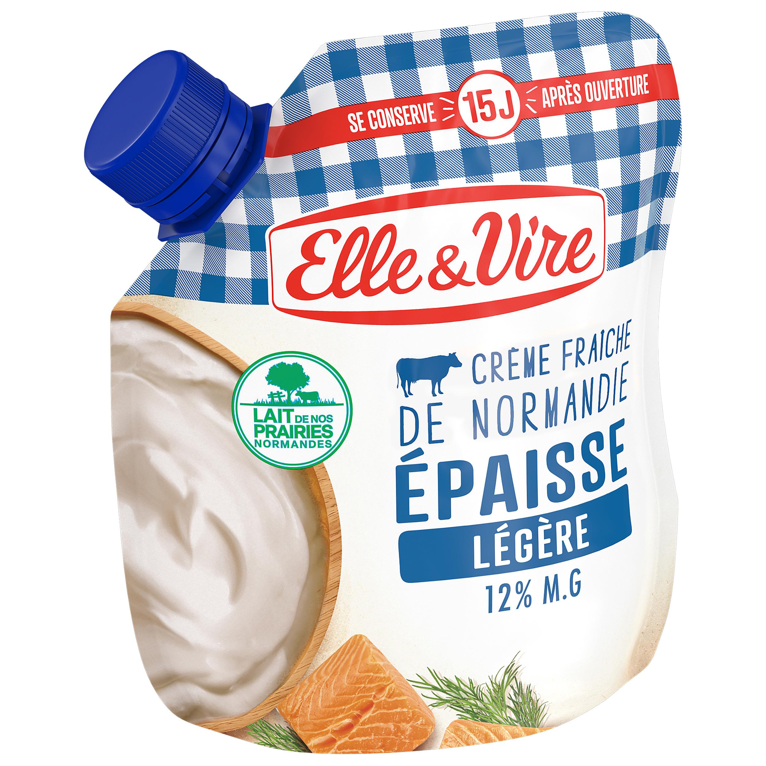 Notre Crème Épaisse Légère est idéale pour réaliser vos quiches et sauces chaudes. Sa texture est également parfaite pour donner de l'onctuosité à vos soupes et purées. C'est au cœur de son beau Pays Normand qu'Elle & Vire a élaboré cette crème en poche, disponible au rayon frais. Pratique et simple d'utilisation, astucieuse grâce à son bouchon qui permet un versement facile (plus besoin de cuillère), la poche permet une conservation optimale de la crème, à l'abri de l'air et de la lumière.
