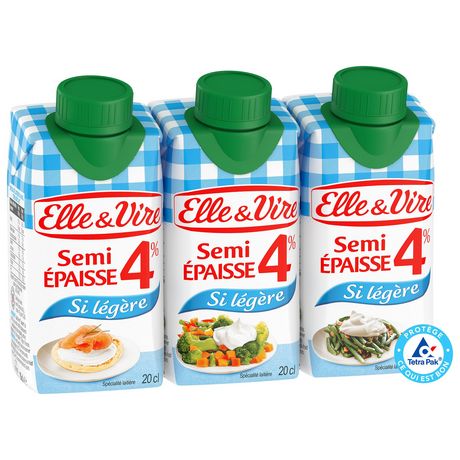 ELLE et VIRE Crème semi-épaisse légère 4% MG UHT 3x20cl