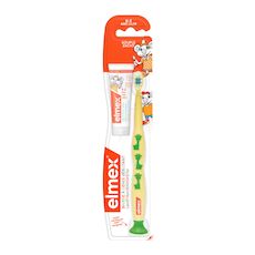 Les dents doivent être brossées une fois par jour jusqu'au 3ème anniversaire et par la suite deux fois par jour. Dès l'apparition des 1ères dents permanentes, les jeunes enfants doivent utiliser un dentifrice à teneur en fluorure adaptée aux dents permanentes immatures. Les dentistes recommandent de changer de brosse à dents tous les 3 mois. Parfaitement adaptée en association avec le dentifrice elmex ENFANT. Demandez conseil à votre dentiste.