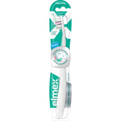 La brosse à dents elmex Expert Precision Sensitive Extra Souple est conçue pour un nettoyage en profondeur et en douceur des dents sensibles et assure une meilleure répartition de la pression sur les zones sensibles.