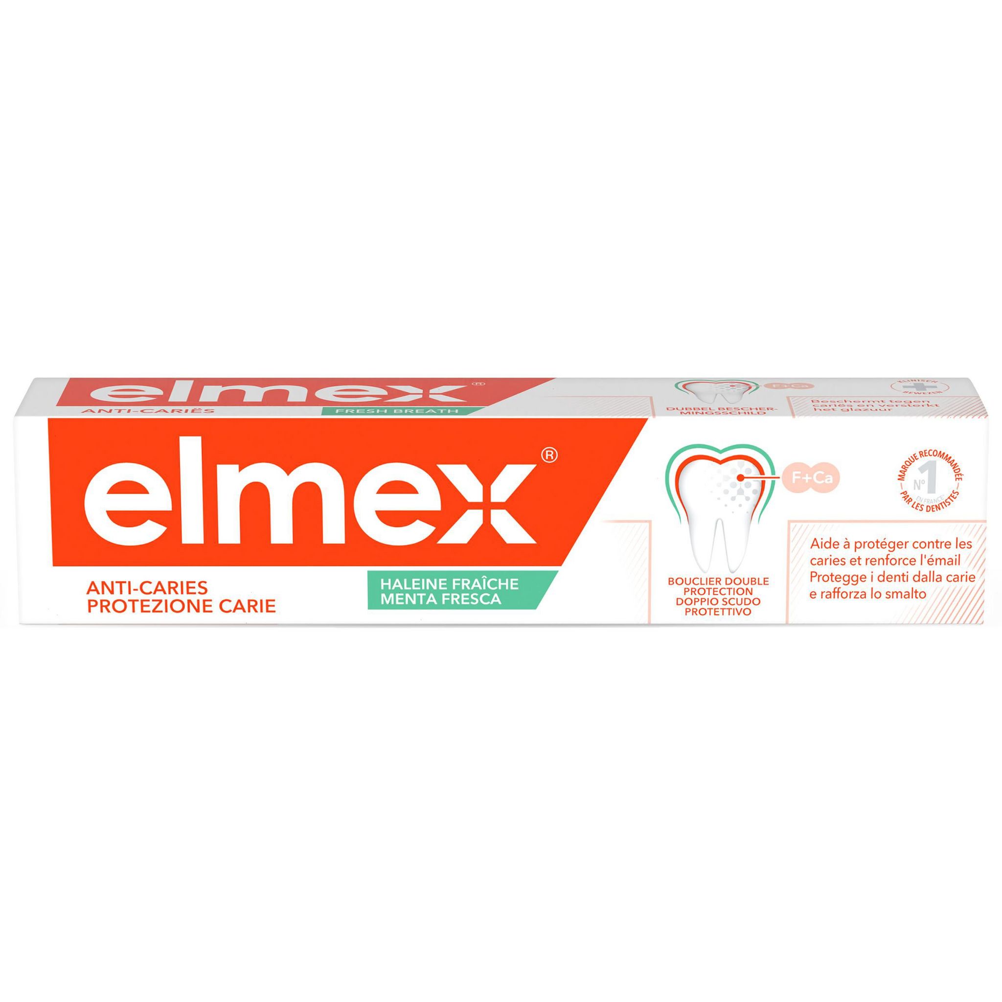 Le dentifrice elmex® Anti-Caries Haleine Fraîche au Neo-Aminex™ est spécialement conçu pour protéger contre les caries. En formant rapidement une couche protectrice, il reminéralise les dents et aide à prévenir la perte de minéraux