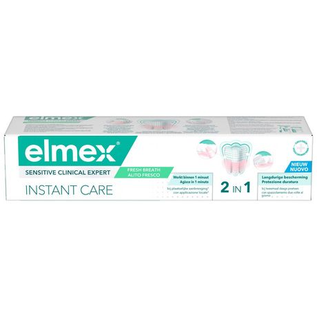 Le dentifrice elmex® Sensitive Soin Instantané agit en 1 minute lorsqu'il est appliqué du bout des doigts sur la zone sensible de la dent et offre une protection durable contre la sensibilité lorsqu'il est utilisé deux fois par jour.