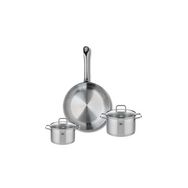 Découvrez l'ensemble de cuisine Elo Profi Citrin, comprenant une poêle de cuisson de 24 cm et deux faitouts de 12 et 14 cm, idéal pour répondre à tous vos besoins culinaires. Fabriqués en inox de haute qualité, ces ustensiles garantissent une excellente conduction de la chaleur, vous permettant de c