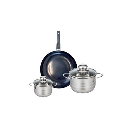 Ensemble de 1 Poêle de cuisson 24 cm et 2 faitouts 12 et 16 cm Elo Prima Brillant
