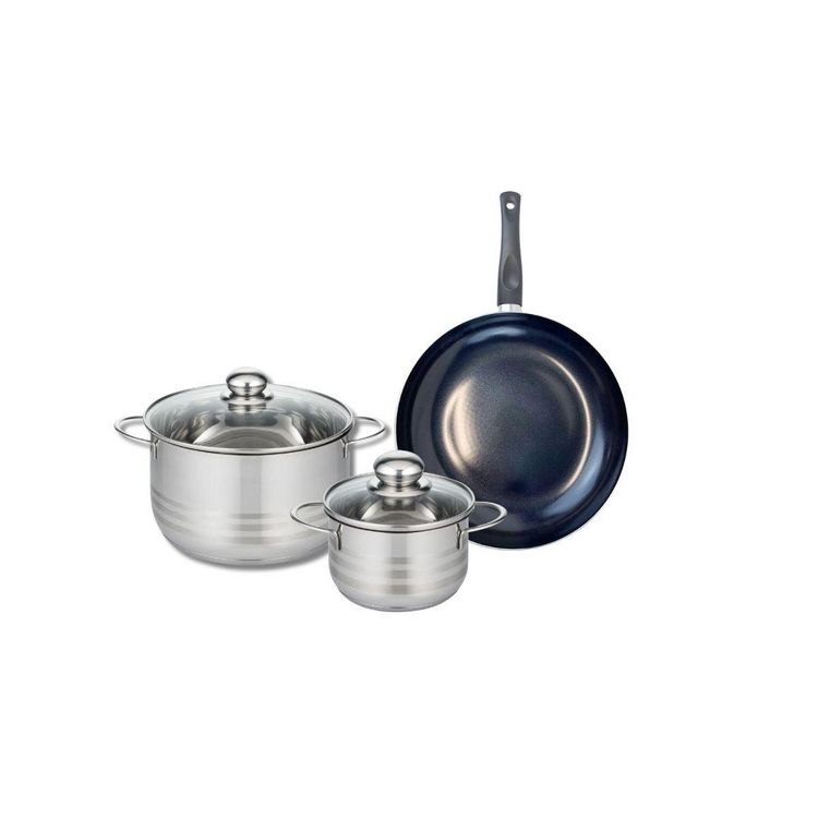 Ensemble de 1 Poêle de cuisson 24 cm et 2 faitouts 14 et 20 cm Elo Prima Brillant