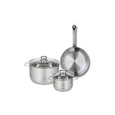 La poêle de cuisson de 24 cm est idéale pour saisir, faire revenir ou cuire vos plats préférés, offrant une répartition uniforme de la chaleur grâce à son matériau inoxydable. Les deux faitouts, de 14 et 20 cm, sont parfaits pour mijoter des soupes, cuire des légumes ou préparer des plats en sauce. Leur design élégant et poli ajoute une touche moderne à votre cuisine.