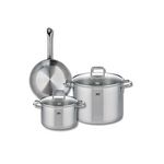 Découvrez l'ensemble de cuisine Elo Profi Citrin, comprenant une poêle de cuisson de 24 cm et deux faitouts de 20 et 26 cm. Conçus en inox de haute qualité, ces ustensiles allient robustesse et performance pour vous accompagner dans toutes vos préparations culinaires.La poêle de cuisson, idéale pour