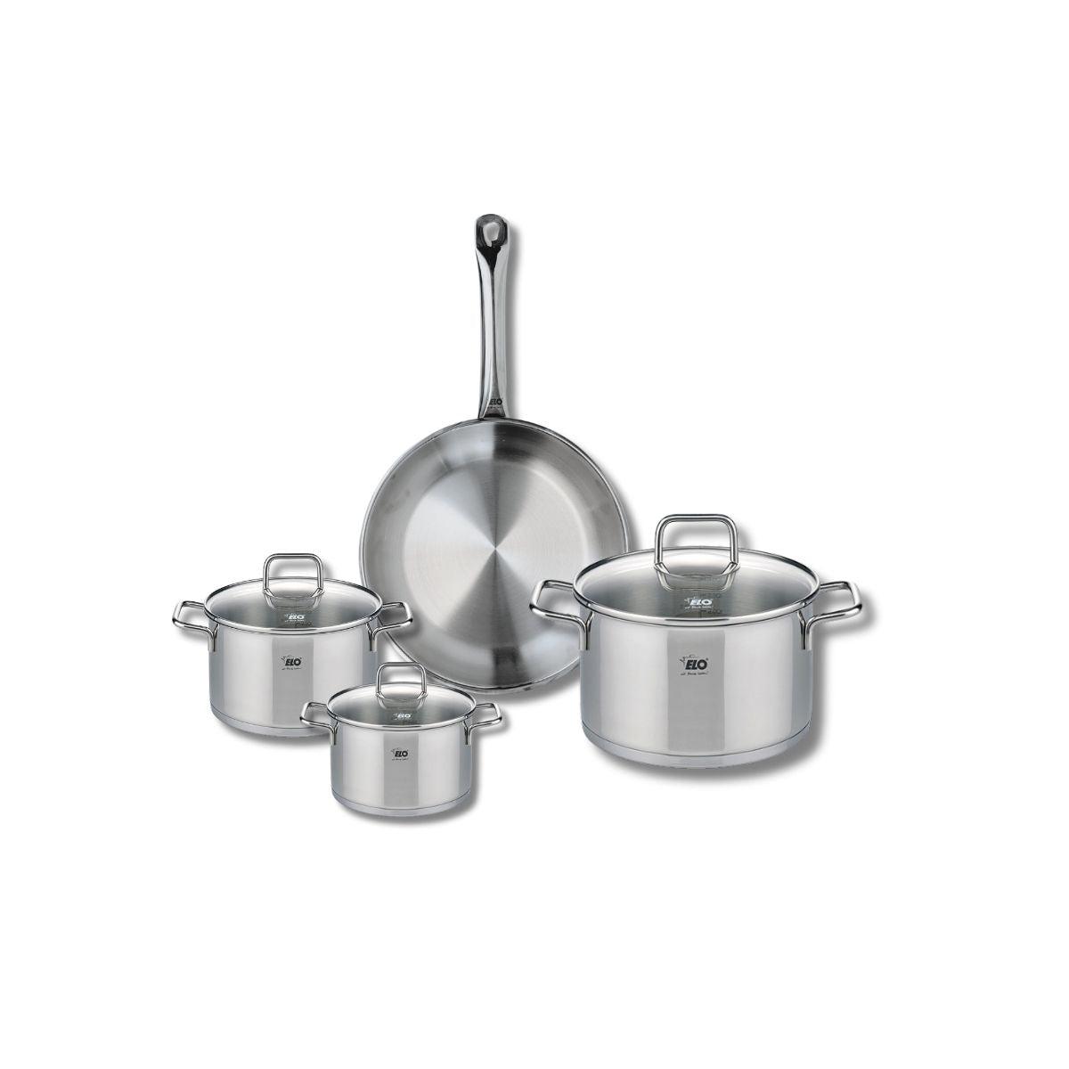 Découvrez l'ensemble de cuisine Elo Profi Citrin, comprenant une poêle de cuisson de 24 cm et trois faitouts de 12, 14 et 20 cm. Conçu en inox de haute qualité, cet ensemble allie robustesse et performance pour tous vos besoins culinaires. La poêle de cuisson est idéale pour saisir, faire revenir ou