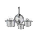 En savoir +Découvrez l'ensemble de cuisine Elo Profi Citrin, composé d'une poêle de cuisson de 24 cm et de trois faitouts de 14, 16 et 20 cm. Conçus en inox de haute qualité, ces ustensiles de cuisine allient élégance et performance pour répondre à tous vos besoins culinaires.