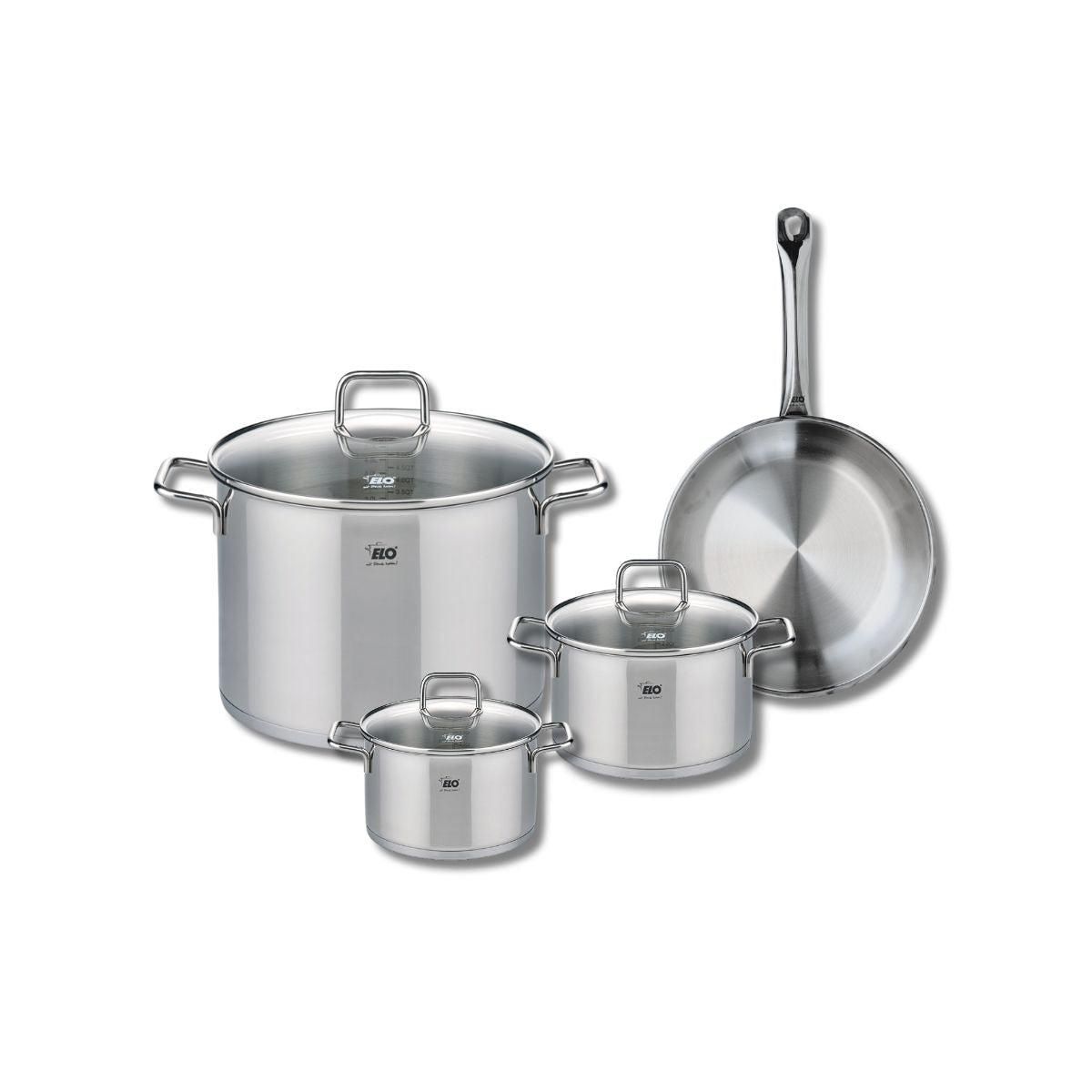 Découvrez l'ensemble de cuisine Elo Profi Citrin, qui comprend une poêle de cuisson de 24 cm et trois faitouts de 14, 16 et 26 cm, tous en inox de haute qualité. Conçus pour les cuisiniers amateurs et professionnels, cet ensemble est idéal pour une variété de préparations, de la cuisson des légumes
