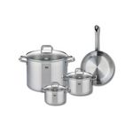Découvrez l'ensemble de cuisine Elo Profi Citrin, qui comprend une poêle de cuisson de 24 cm et trois faitouts de 14, 16 et 26 cm, tous en inox de haute qualité. Conçus pour les cuisiniers amateurs et professionnels, cet ensemble est idéal pour une variété de préparations, de la cuisson des légumes à la préparation de plats mijotés.