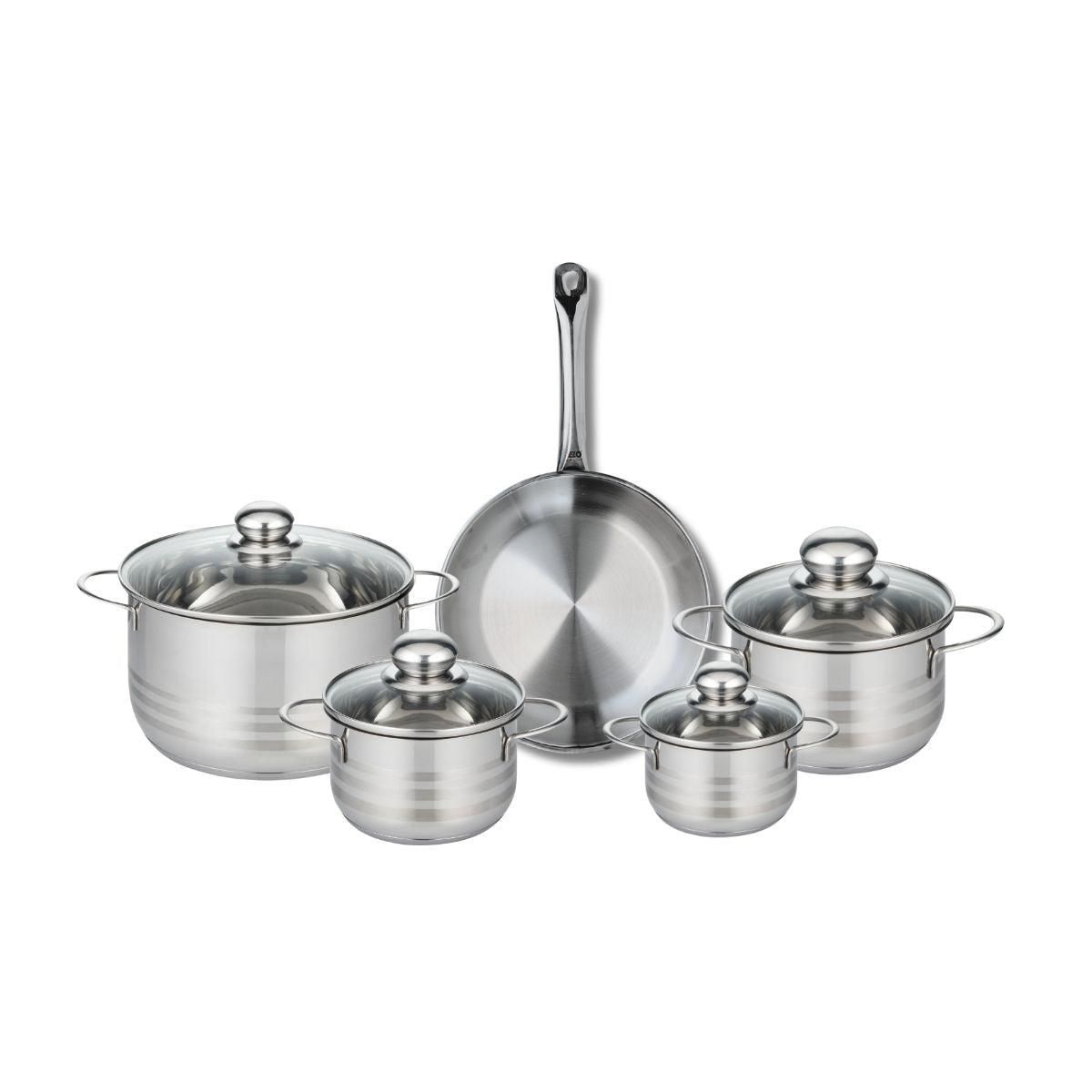 Ensemble de 1 Poêle de cuisson 24 cm et 4 faitouts 12, 14, 16 et 20 cm Elo Profi Brillant