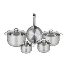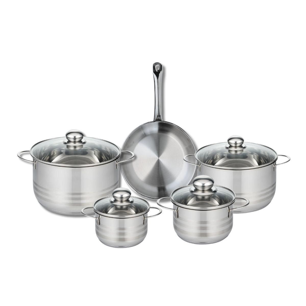 Ensemble de 1 Poêle de cuisson 24 cm et 4 faitouts 14, 16, 20 et 24 cm Elo Profi Brillant