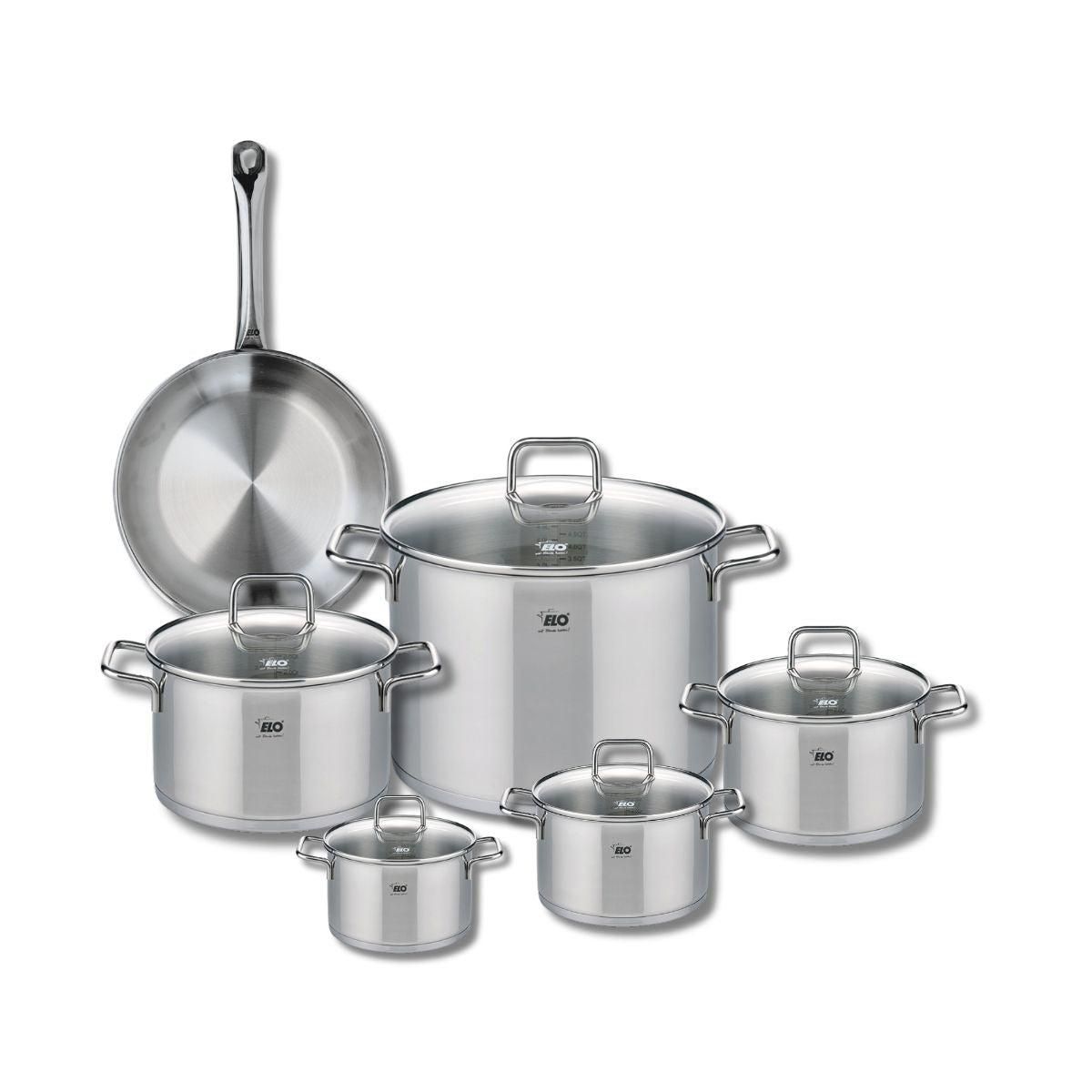 Découvrez l'ensemble de cuisine Elo Profi Citrin, composé d'une poêle de cuisson de 24 cm et de cinq faitouts de 12, 14, 16, 20 et 26 cm. Conçu en inox robuste, cet ensemble est idéal pour tous vos besoins culinaires, que vous soyez un chef amateur ou un cuisinier expérimenté. La poêle de 24 cm perm
