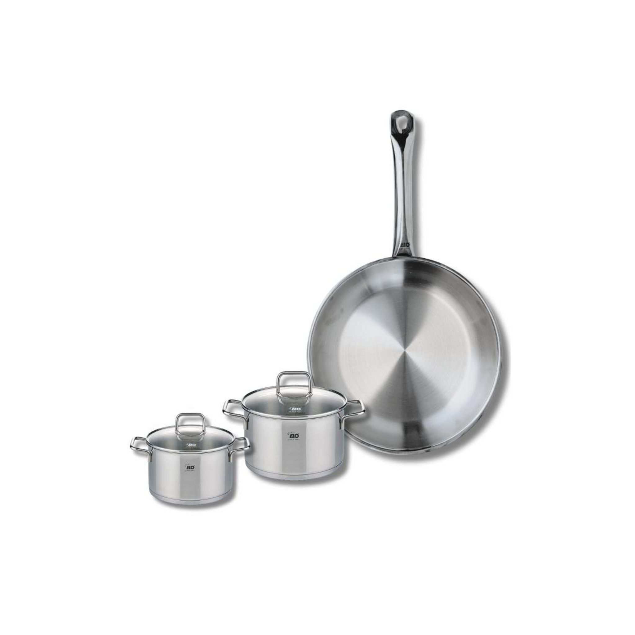Découvrez l'ensemble de cuisine Elo Profi Citrin, une batterie de cuisine composée d'une poêle de cuisson de 28 cm et de deux faitouts de 12 et 14 cm. Fabriqués en inox de haute qualité, ces ustensiles sont conçus pour répondre aux besoins des chefs amateurs et professionnels.La poêle de cuisson de