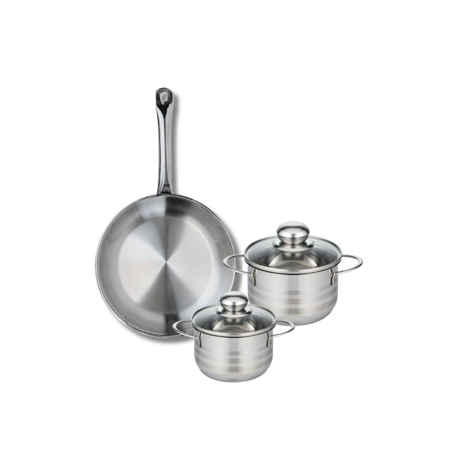 Ensemble de 1 Poêle de cuisson 28 cm et 2 faitouts 14 et 16 cm Elo Profi Brillant