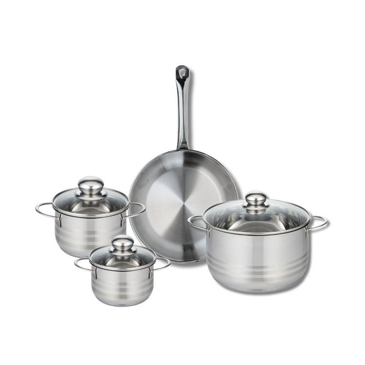 Ensemble de 1 Poêle de cuisson 28 cm et 3 faitouts 14, 16 et 24 cm Elo Profi Brillant