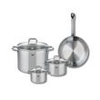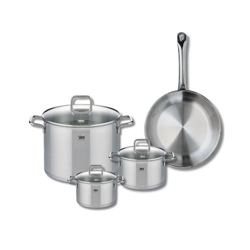 Découvrez l'ensemble de cuisson Elo Profi Citrin, composé d'une poêle de cuisson de 28 cm et de trois faitouts de 14, 16 et 26 cm, parfait pour tous vos besoins culinaires. Fabriqués en inox de haute qualité, ces ustensiles garantissent une excellente conductivité thermique, permettant une cuisson u