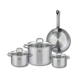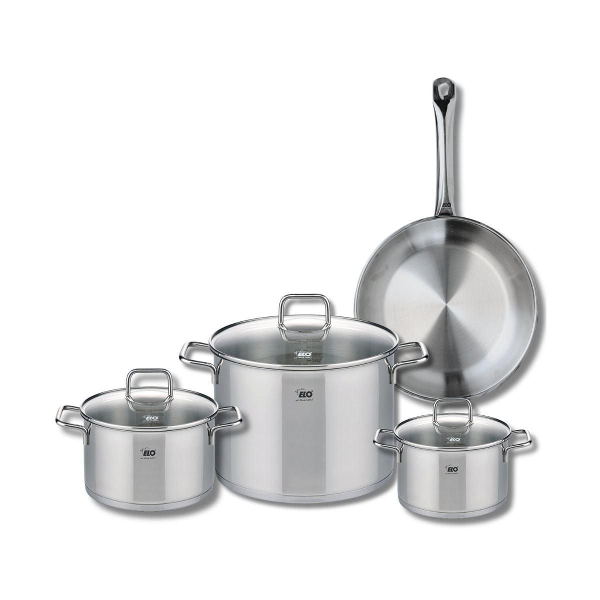 Découvrez l'ensemble de cuisson Elo Profi Citrin, composé d'une poêle de cuisson de 28 cm et de trois faitouts de 16, 20 et 26 cm, idéal pour tous vos besoins culinaires. Fabriqués en inox de haute qualité, ces ustensiles garantissent une excellente conductivité thermique, permettant une cuisson uni