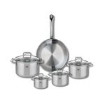 En savoir +Découvrez l'ensemble de cuisson Elo Profi Citrin, une batterie de cuisine de 9 pièces qui allie fonctionnalité et élégance. Composé d'une poêle de cuisson de 28 cm et de quatre faitouts de 12, 14, 16 et 20 cm, cet ensemble est idéal pour tous vos besoins culinaires, qu'il s'agisse de faire sauter, mijoter ou cuire à la vapeur.
