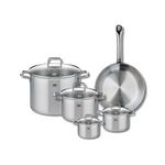 Découvrez l'ensemble de cuisson Elo Profi Citrin, une batterie de cuisine polyvalente et robuste, idéale pour tous vos besoins culinaires. Ce lot comprend une poêle de cuisson de 28 cm et quatre faitouts de différentes tailles : 12, 14, 20 et 26 cm. Fabriqués en inox de haute qualité, ces ustensiles vous garantissent une excellente répartition de la chaleur, parfaite pour cuire vos plats uniformément.