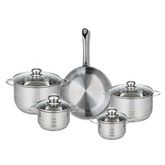 Découvrez l'ensemble de poêle de cuisson et faitouts Elo Profi Brillant, une batterie de cuisine complète et polyvalente, idéale pour tous vos besoins culinaires. Comprenant une poêle de cuisson de 28 cm et quatre faitouts de 14, 16, 20 et 24 cm, cet ensemble en inox allie design moderne et fonctionnalité.