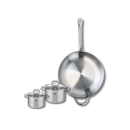 Découvrez l'ensemble de cuisine Elo Profi Citrin, comprenant une poêle de cuisson de 32 cm et deux faitouts de 12 et 14 cm, idéal pour les passionnés de gastronomie. Conçus en inox de haute qualité, ces ustensiles offrent une robustesse exceptionnelle, garantissant une utilisation à long terme. La p