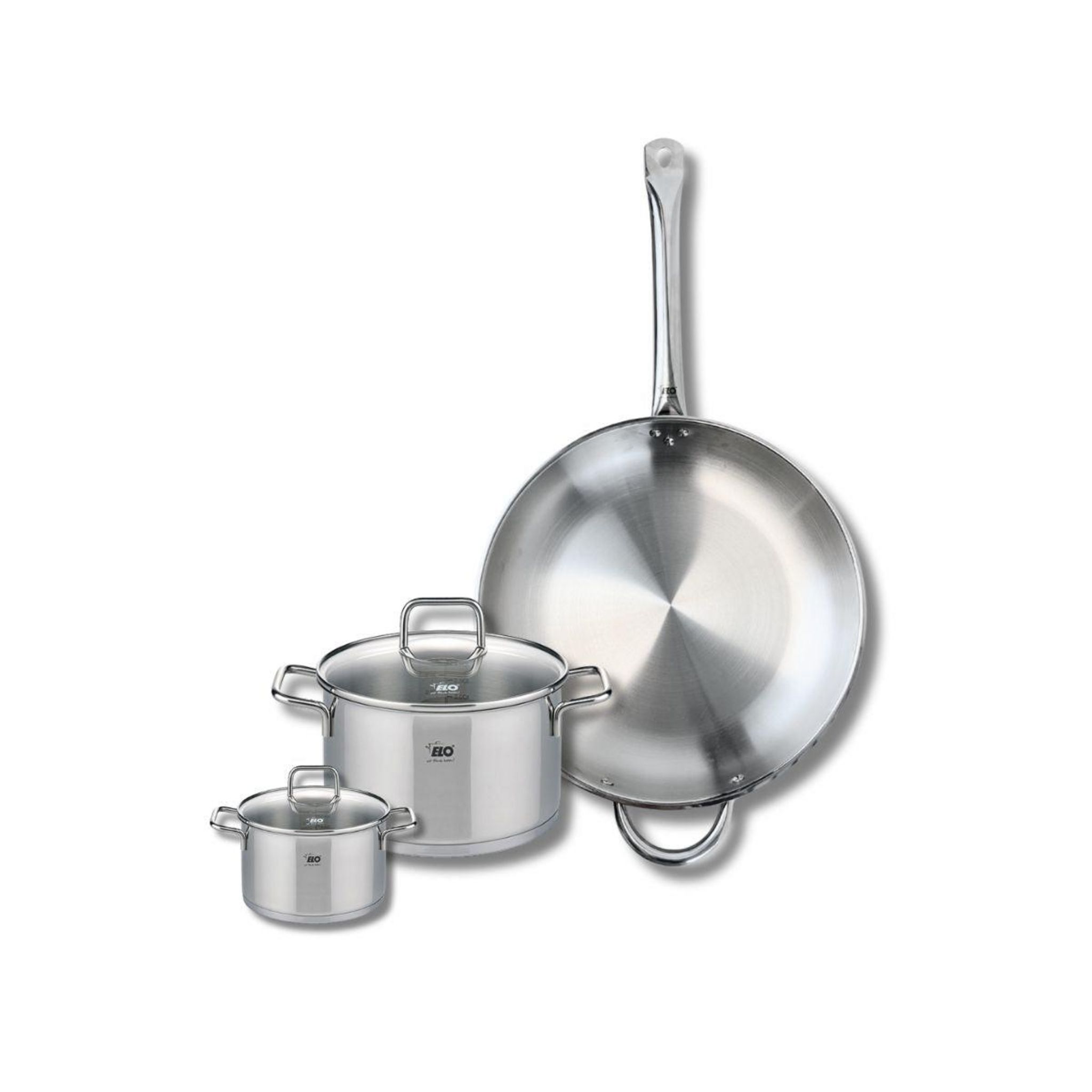 Découvrez l'ensemble de cuisson Elo Profi Citrin, comprenant une poêle de cuisson de 32 cm et deux faitouts de 12 et 20 cm. Ces ustensiles de cuisine en inox sont conçus pour répondre à tous vos besoins culinaires, que ce soit pour préparer des plats savoureux au quotidien ou pour des occasions spéc