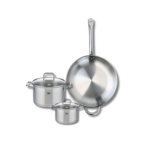 Découvrez l'ensemble de cuisine Elo Profi Citrin, comprenant une poêle de cuisson de 32 cm et deux faitouts de 14 et 20 cm. Fabriqués en inox robuste, ces ustensiles de cuisine sont conçus pour répondre aux besoins des chefs amateurs et professionnels.La poêle de cuisson, avec son diamètre généreux,