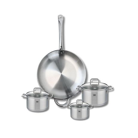 Découvrez l'ensemble de cuisine Elo Profi Citrin, un lot essentiel pour tous les passionnés de cuisine. Ce set comprend une poêle de cuisson de 32 cm et trois faitouts de 12, 14 et 16 cm, tous conçus en inox de haute qualité, garantissant une robustesse et une longévité exceptionnelles.La poêle de c