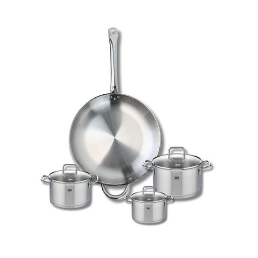 En savoir +Découvrez l'ensemble de cuisine Elo Profi Citrin, un lot essentiel pour tous les passionnés de cuisine. Ce set comprend une poêle de cuisson de 32 cm et trois faitouts de 12, 14 et 16 cm, tous conçus en inox de haute qualité, garantissant une robustesse et une longévité exceptionnelles.