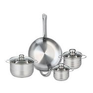 Découvrez l'ensemble de cuisine composé d'une poêle de cuisson de 32 cm et de trois faitouts de 14, 16 et 20 cm de la collection Elo Profi Brillant. Fabriqués en acier inoxydable de haute qualité, ces ustensiles allient élégance et robustesse, parfaits pour répondre à tous vos besoins culinaires.