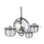 La poêle de cuisson de 32 cm est idéale pour saisir, revenir ou cuire vos plats préférés, offrant une surface de cuisson généreuse qui garantit une chaleur uniforme. Les trois faitouts, quant à eux, se révèlent polyvalents pour préparer des soupes, des ragoûts ou des plats mijotés. Leur conception en inox sans revêtement assure une excellente conductivité thermique tout en facilitant le nettoyage.