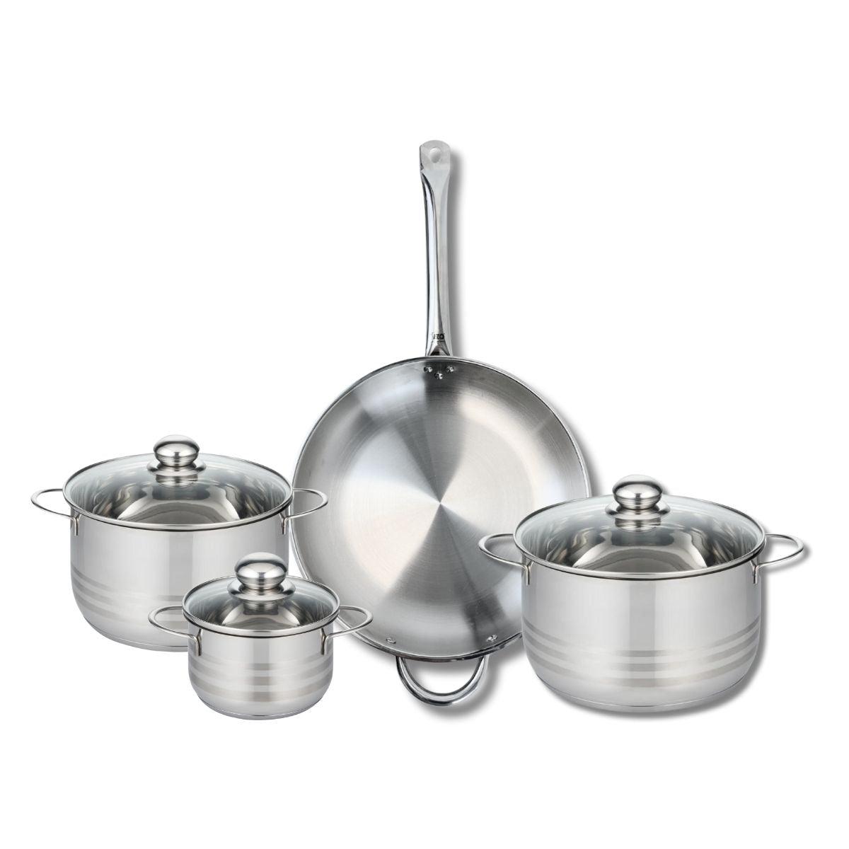 Ensemble de 1 Poêle de cuisson 32 cm et 3 faitouts 14, 20 et 24 cm Elo Profi Brillant