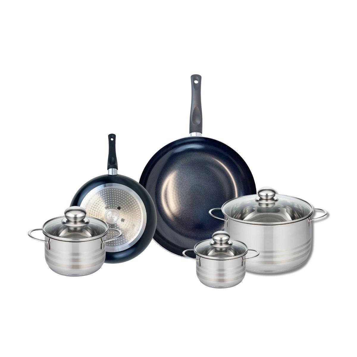 Ensemble de 2 Poêles de cuisson 20 et 28 cm et 3 faitouts 12, 14 et 20 cm Elo Prima Brillant