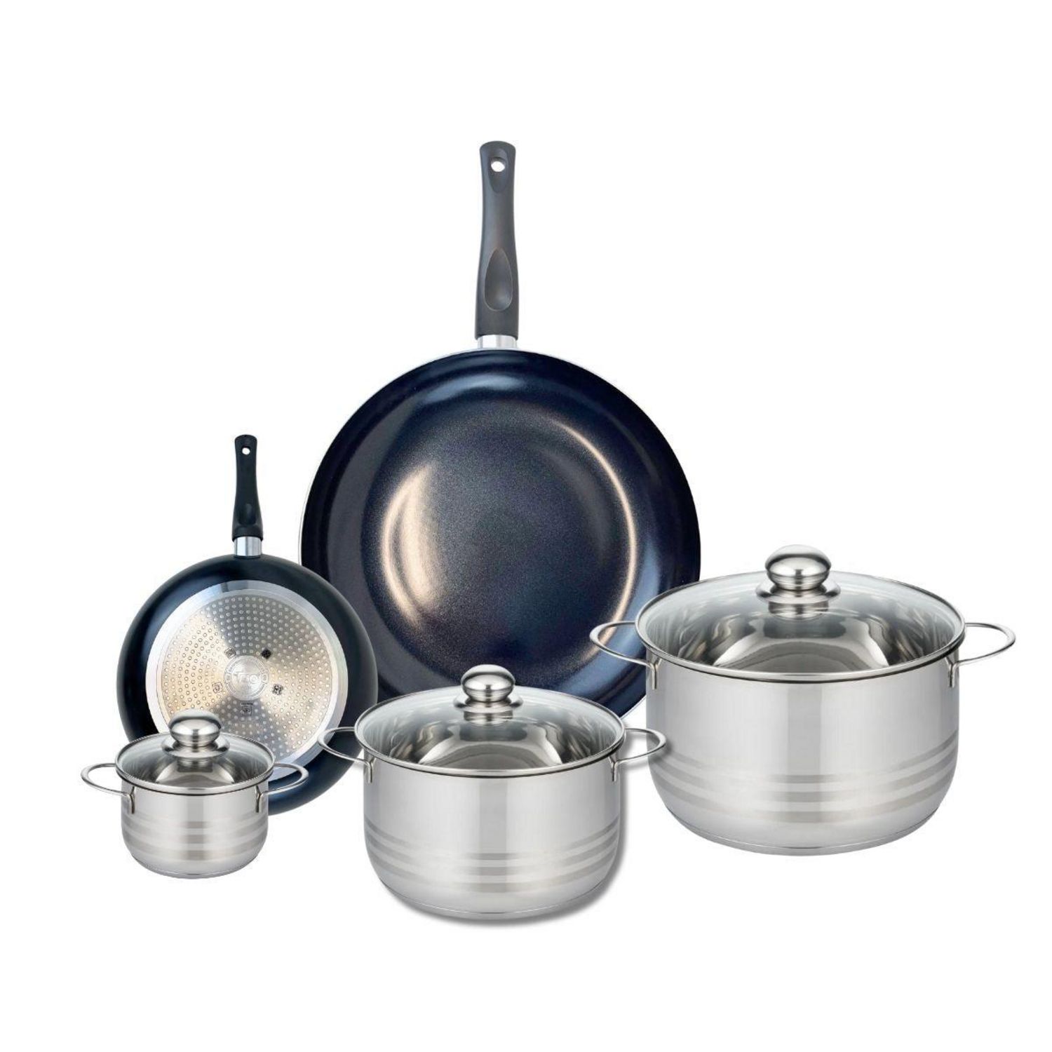 Ensemble de 2 Poêles de cuisson 20 et 32 cm et 3 faitouts 12, 20 et 24 cm Elo Prima Brillant