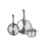 Découvrez l'ensemble de 2 poêles de cuisson de 24 et 28 cm, accompagné d'un faitout de 16 cm de la gamme Elo Profi Brillant. Conçus en acier inoxydable de haute qualité, ces ustensiles de cuisine sont parfaits pour une utilisation quotidienne. Les poêles, sans revêtement, garantissent une cuisson sa