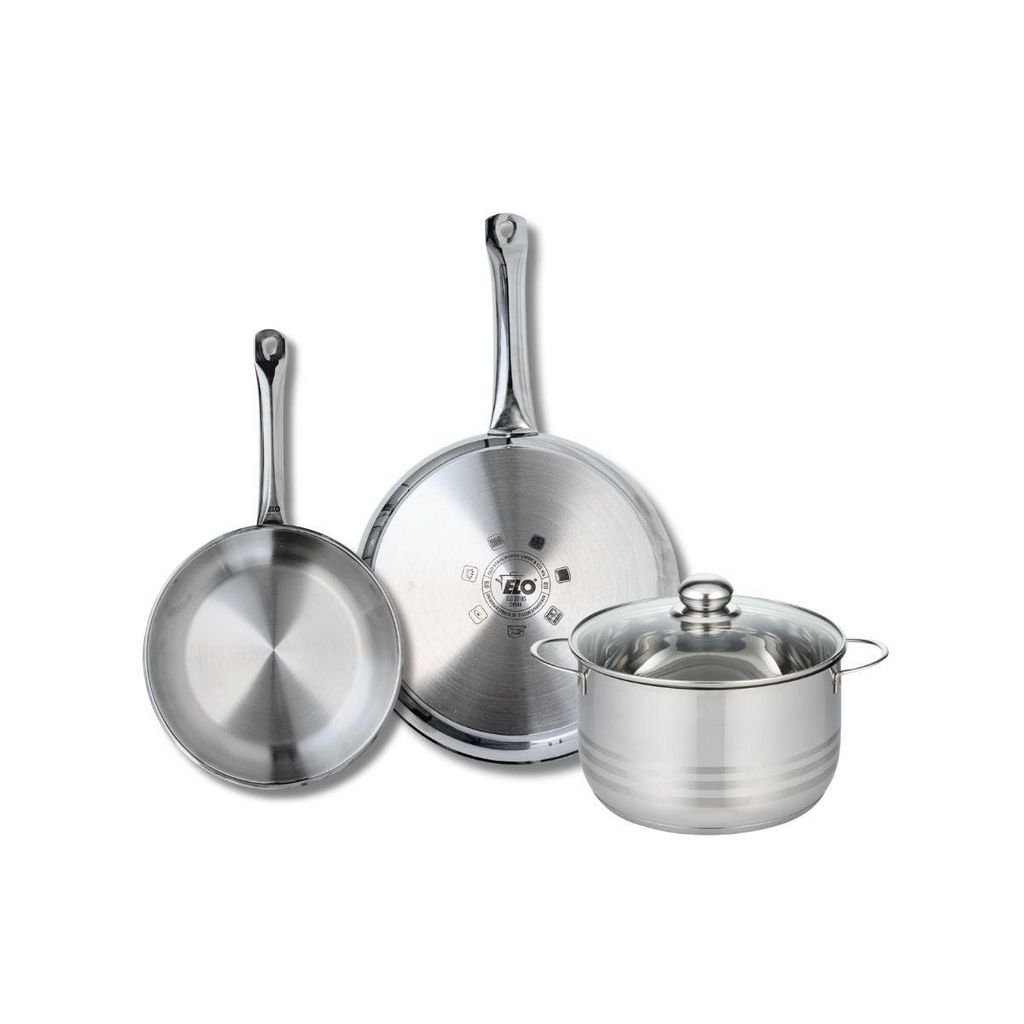 Ensemble de 2 Poêles de cuisson 24 et 28 cm et 1 faitout 20 cm Elo Profi Brillant