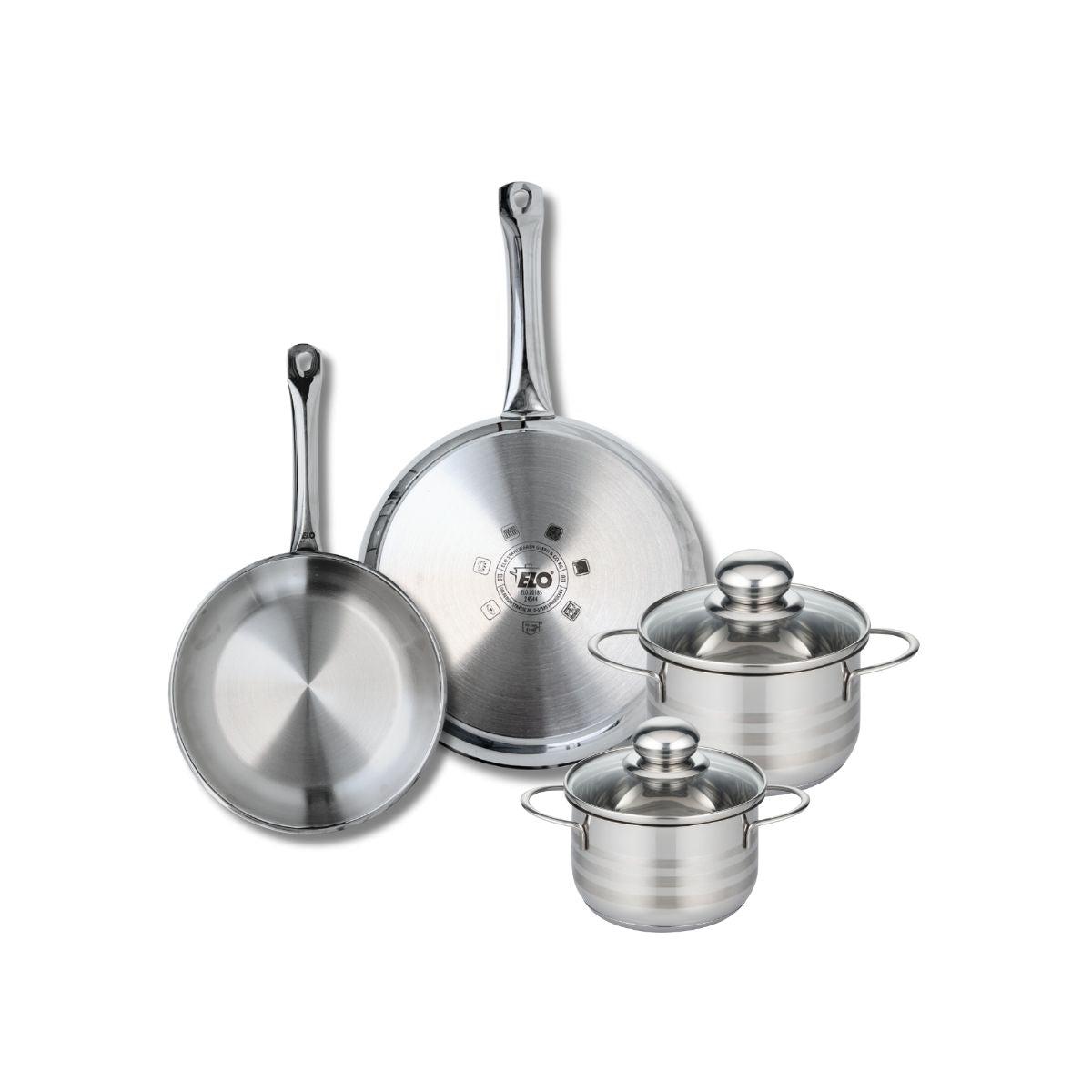Ensemble de 2 Poêles de cuisson 24 et 28 cm et 2 faitouts 14 et 16 cm Elo Profi Brillant