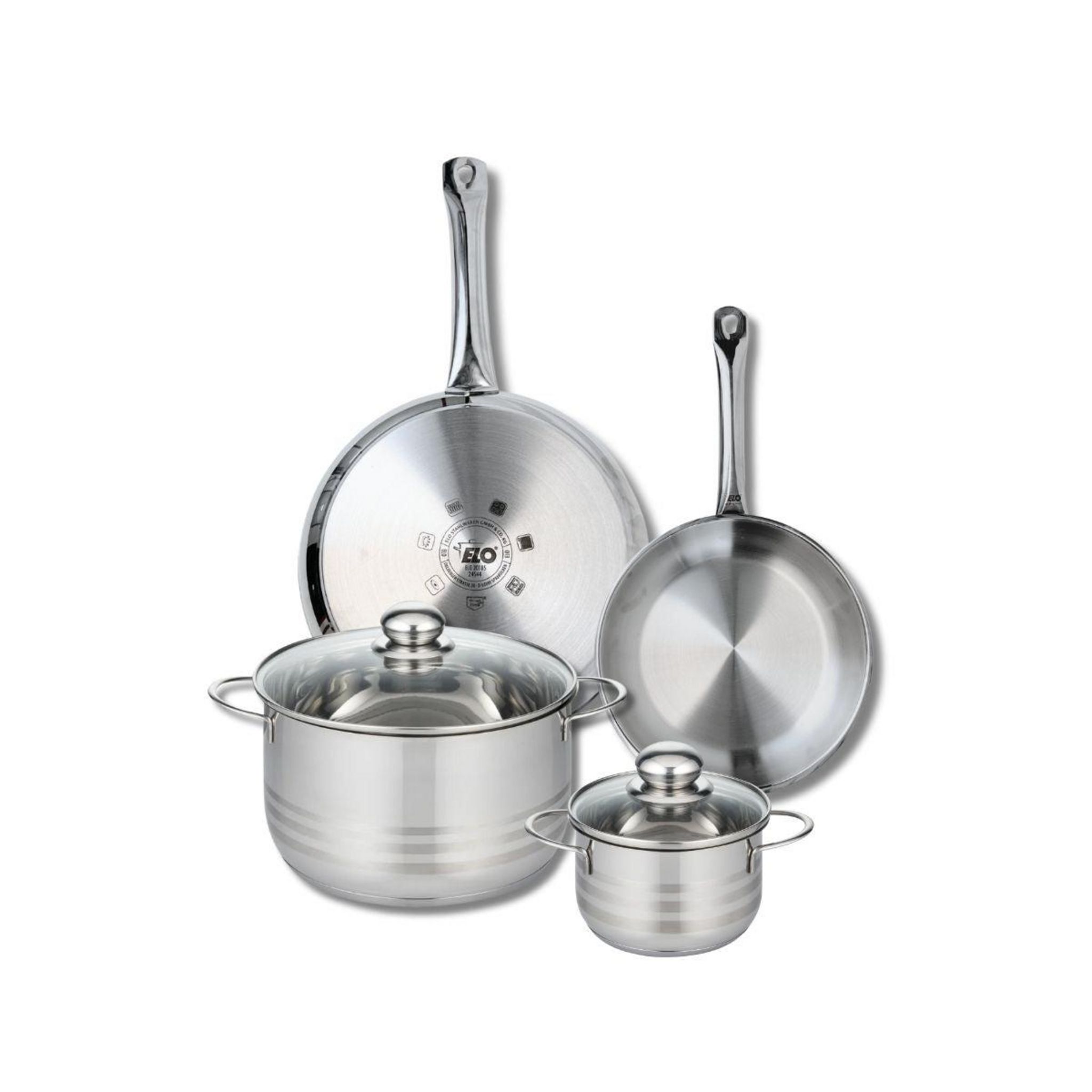 Ensemble de 2 Poêles de cuisson 24 et 28 cm et 2 faitouts 14 et 24 cm Elo Profi Brillant