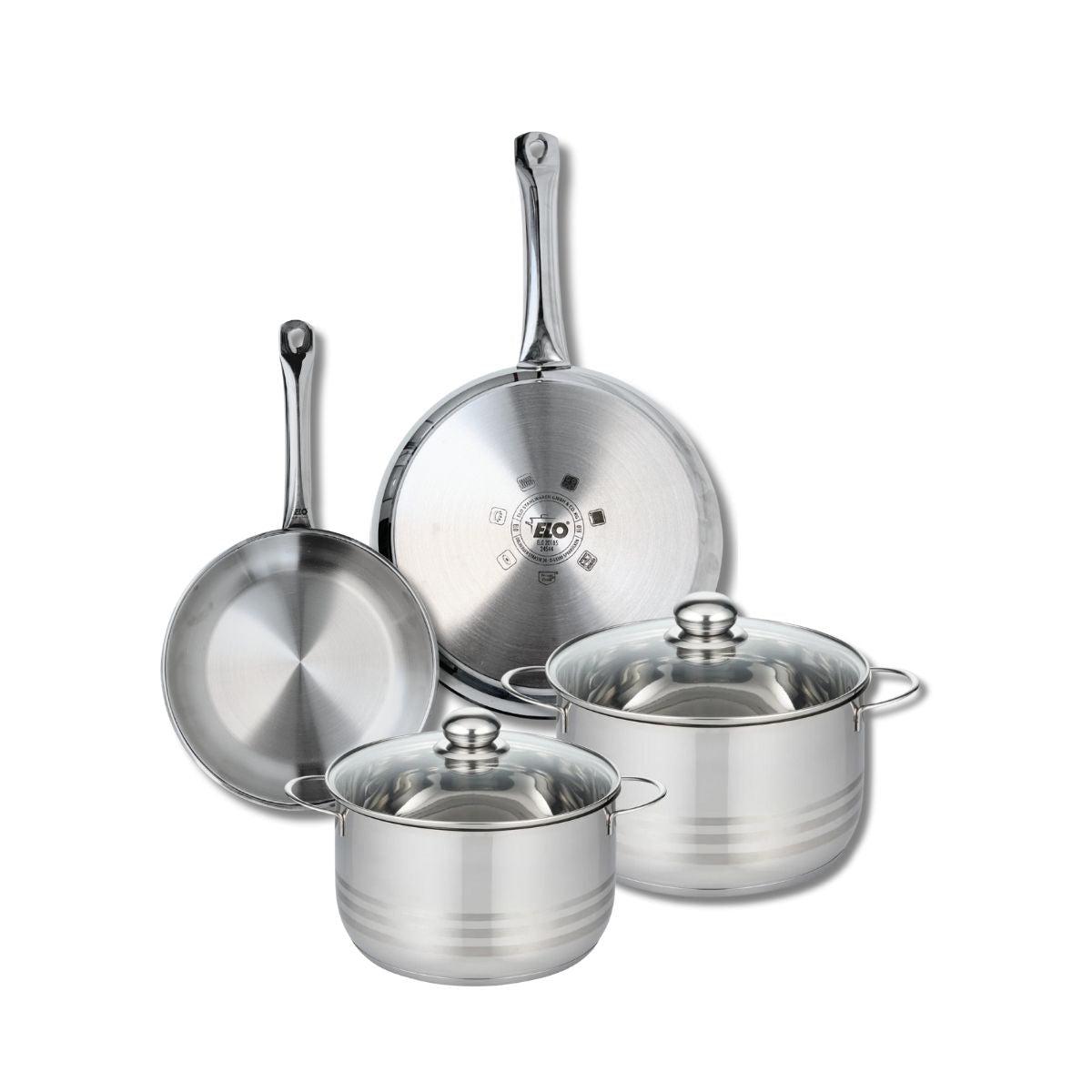 Ensemble de 2 Poêles de cuisson 24 et 28 cm et 2 faitouts 20 et 24 cm Elo Profi Brillant
