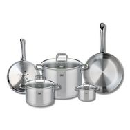 Découvrez l'ensemble de 2 poêles de cuisson et 3 faitouts Elo Profi Citrin, une batterie de cuisine en inox qui allie performance et élégance. Les poêles de 24 cm et 28 cm sont idéales pour saisir, faire revenir ou mijoter vos plats préférés. Leur conception en inox sans revêtement assure une répartition homogène de la chaleur, permettant une cuisson parfaite de vos ingrédients.
