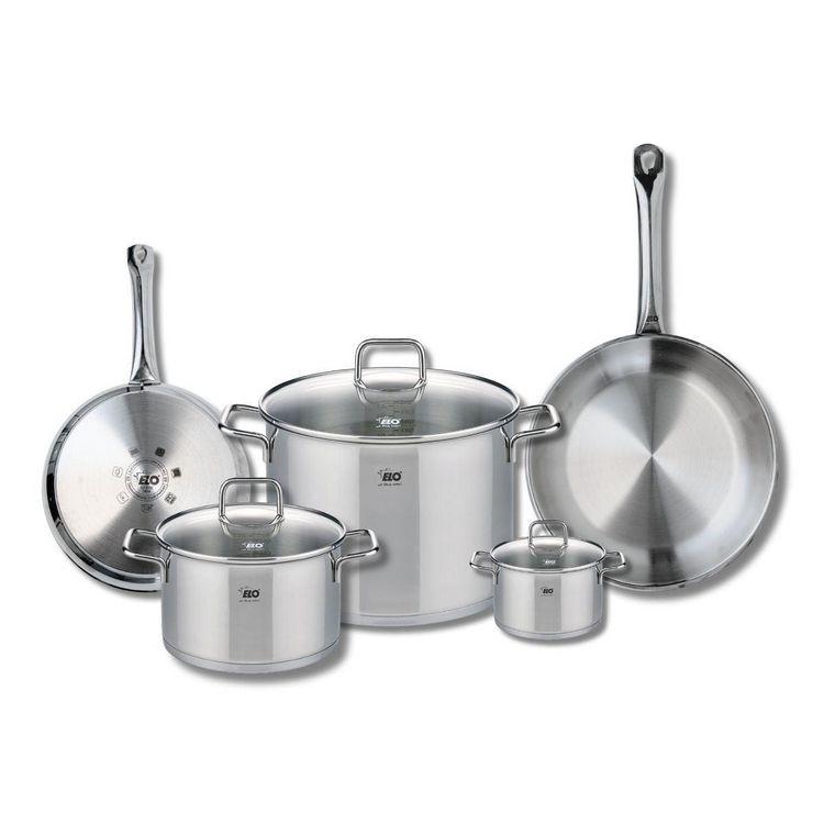 Découvrez l'ensemble de 2 poêles de cuisson et 3 faitouts Elo Profi Citrin, une batterie de cuisine en inox qui allie performance et élégance. Les poêles de 24 cm et 28 cm sont idéales pour saisir, faire revenir ou mijoter vos plats préférés. Leur conception en inox sans revêtement assure une répart