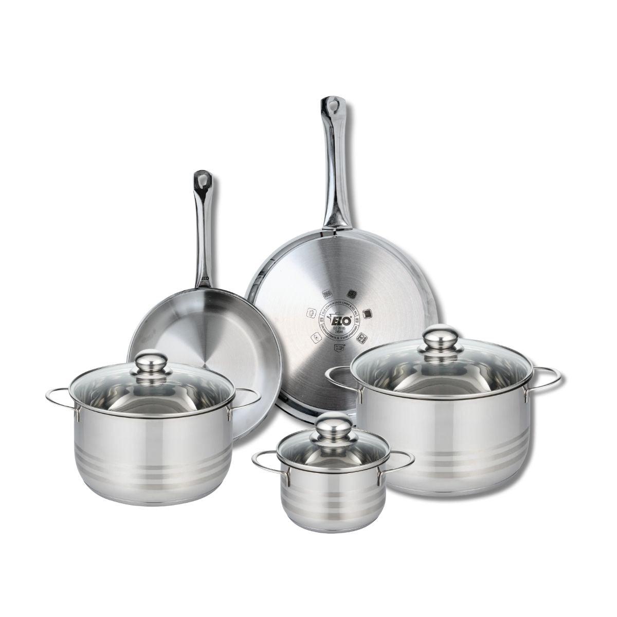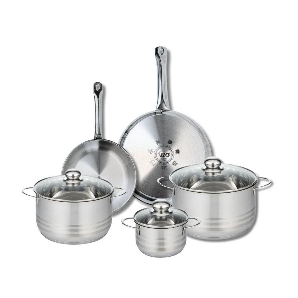 Découvrez l'ensemble de poêles et faitouts de la gamme Profi Brillant d'Elo, parfait pour les passionnés de cuisine. Cet ensemble comprend deux poêles de cuisson de 24 et 28 cm, ainsi que trois faitouts de 14, 20 et 24 cm, tous en acier inoxydable de haute qualité. Grâce à leur conception en inox, c
