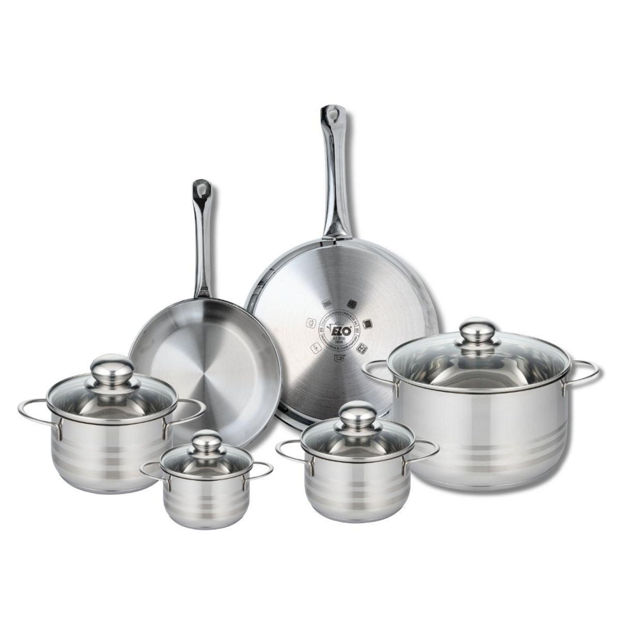 Ensemble de 2 Poêles de cuisson 24 et 28 cm et 4 faitouts 12, 14, 16 et 24 cm Elo Profi Brillant